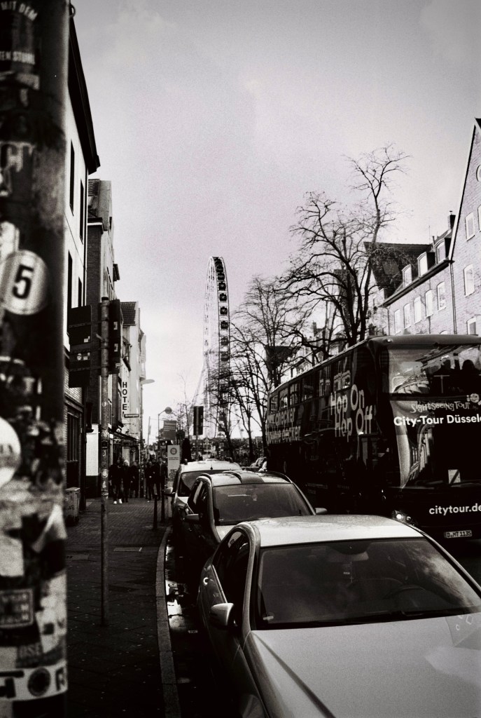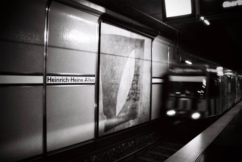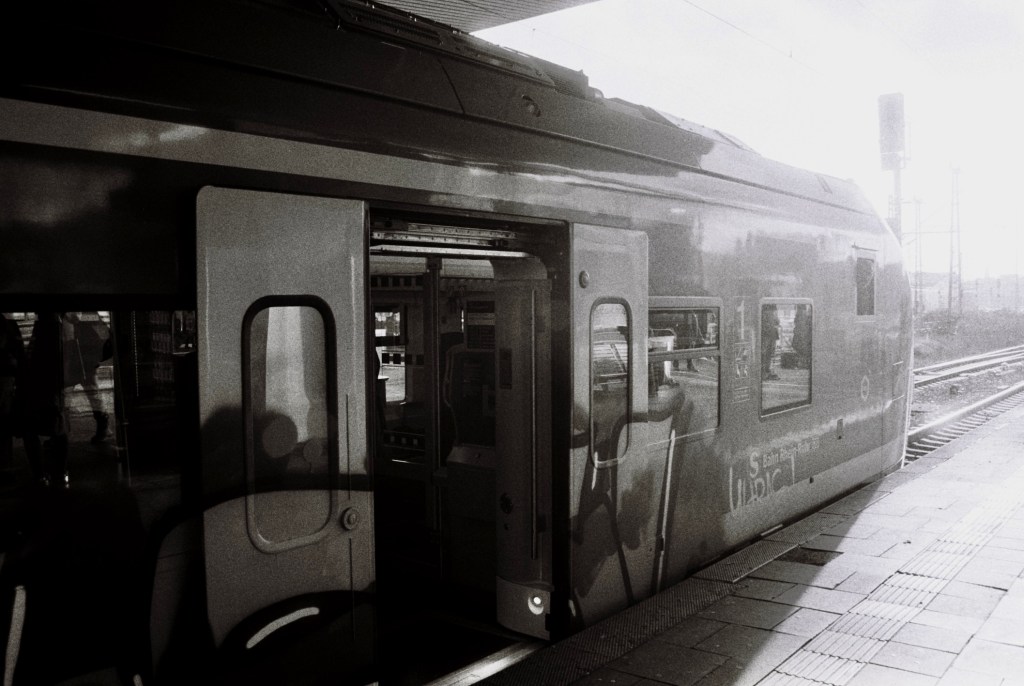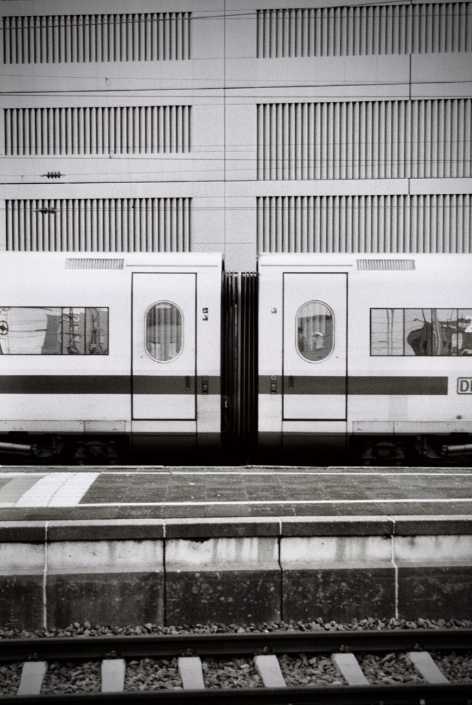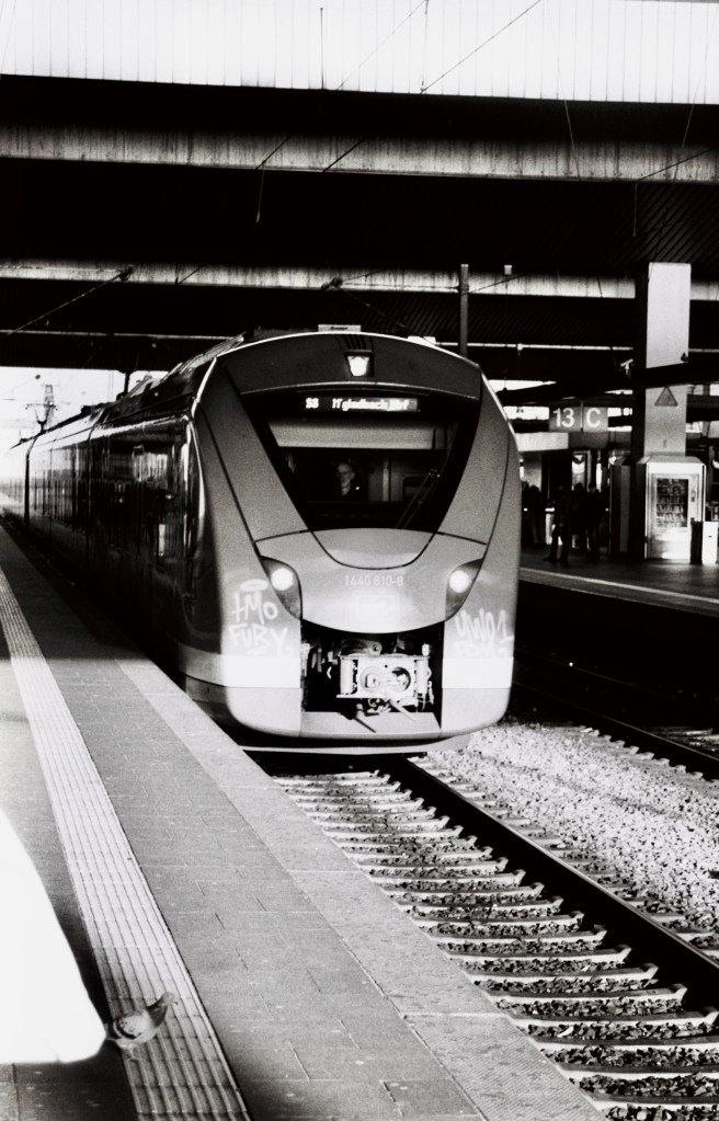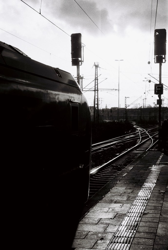 It was one of those windy days when you just want to jump on a warm train and watch cities and fields moving from there with a cup of hot tea. Some Düsseldorf older metro trains still have small tables. I didn’t have any tea with, but thoughts about trains were already in my head.