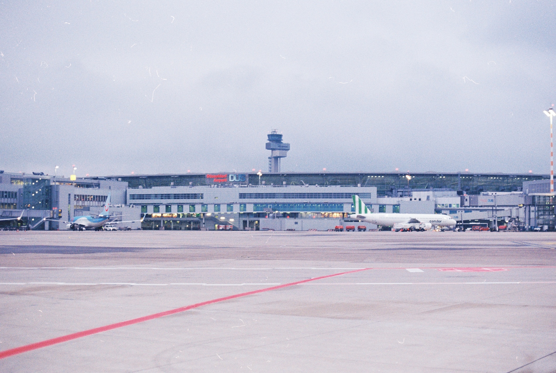 Early morning at the Düsseldorf airport. Many planes are getting ready for the first flight of the day. For now, our airport doesn’t have any long-haul departures so it is almost safe to say that most of the planes will fly at least one more time today after departing rainy Düsseldorf. At least our regional Bombardier for sure will.