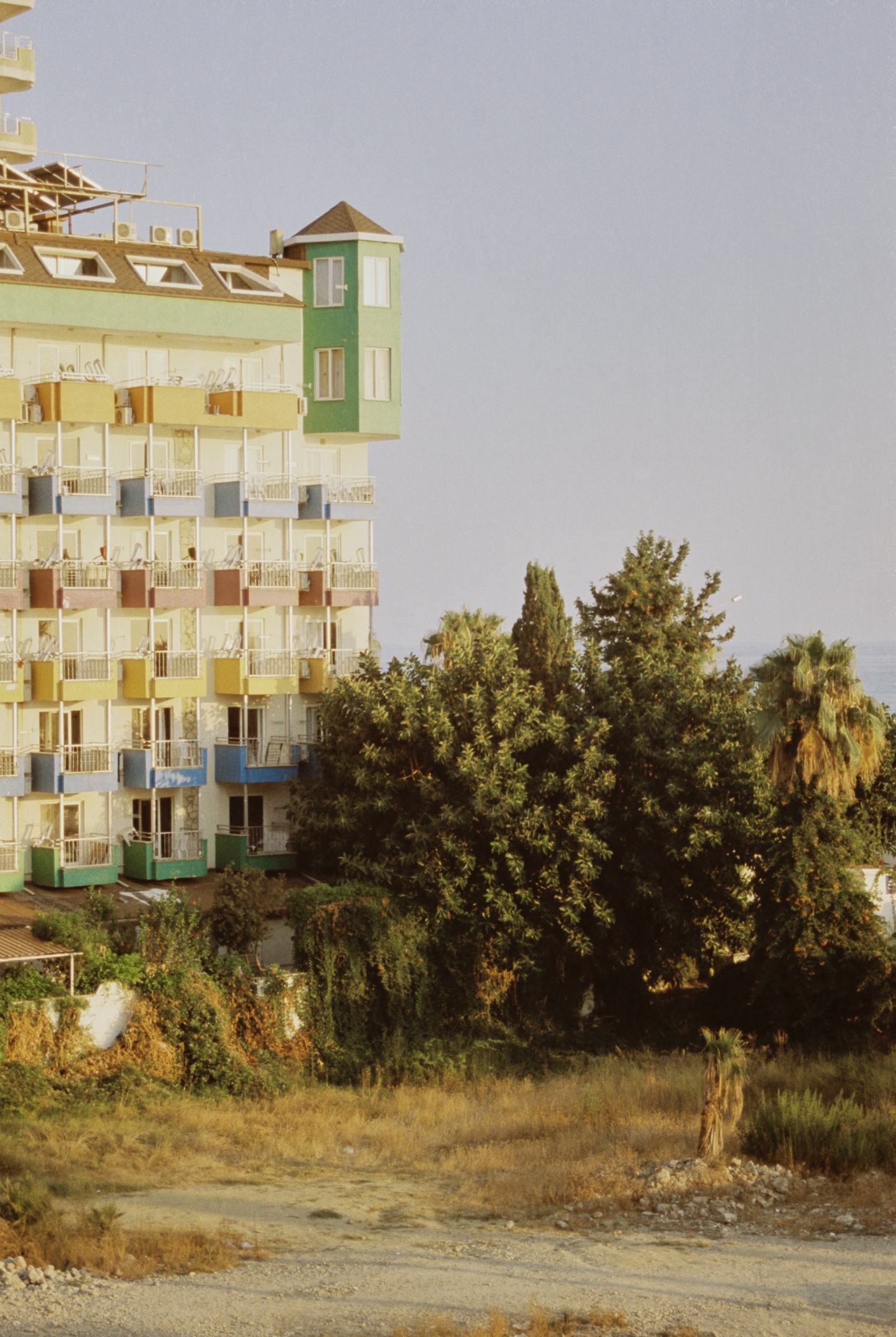 The next photo is a special one. I was looking from the staircase windows on that bus every day and was wondering, why does it always stop here for a couple of hours? Every day. It looks like the usual town bus, but why here? I still don’t know. But it looks to be happy escaping the exhausting and intense traffic of the resort area and just looking at one of the last empty spaces in that town. Next year, probably, there will be another hotel, another all-inclusive full of hurrying people who try to get all 150% of their vacation time. But now there is peace. Crazy hot, no idea how he can stay there for so long. But peace, almost without noise from other hotels.