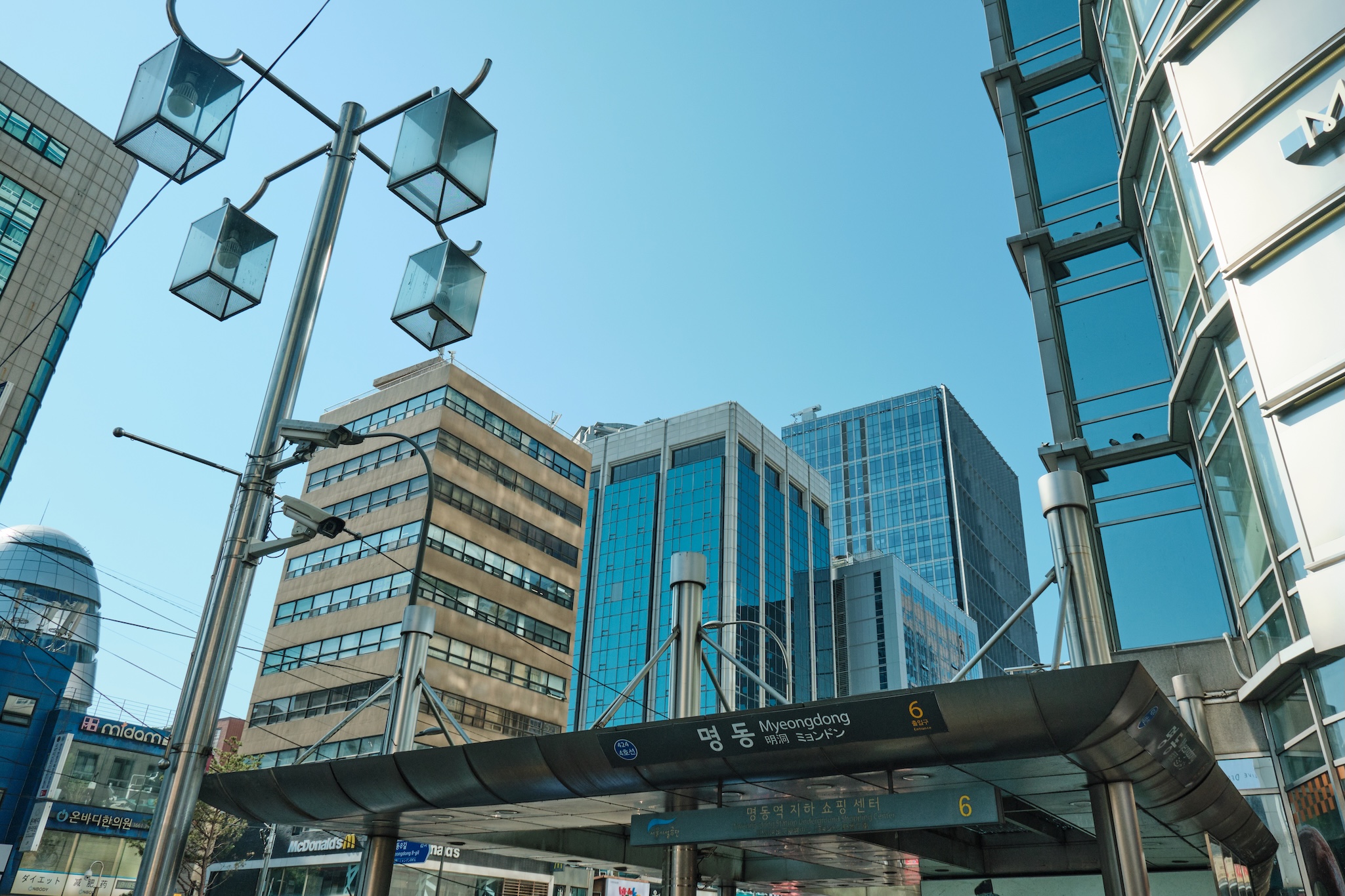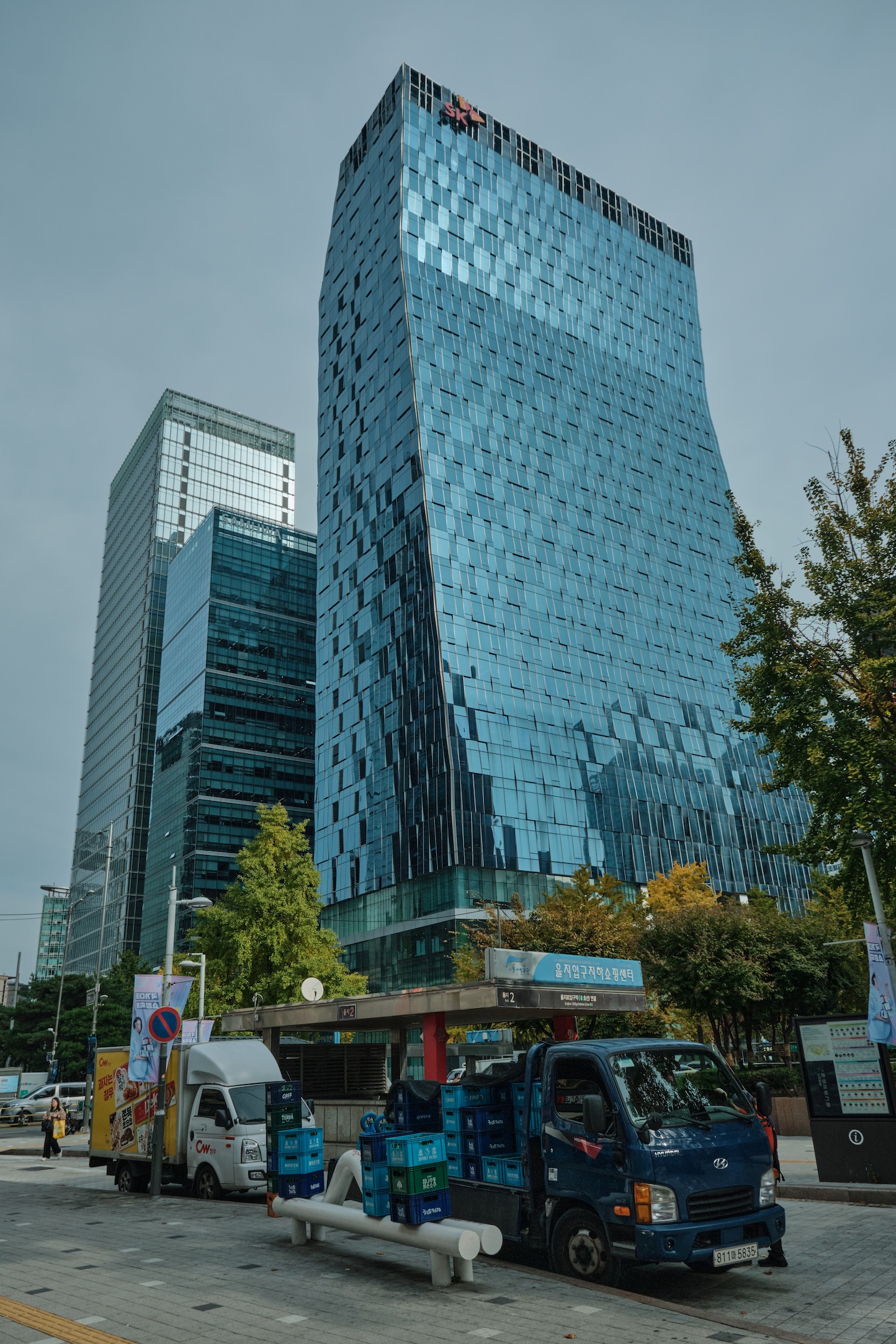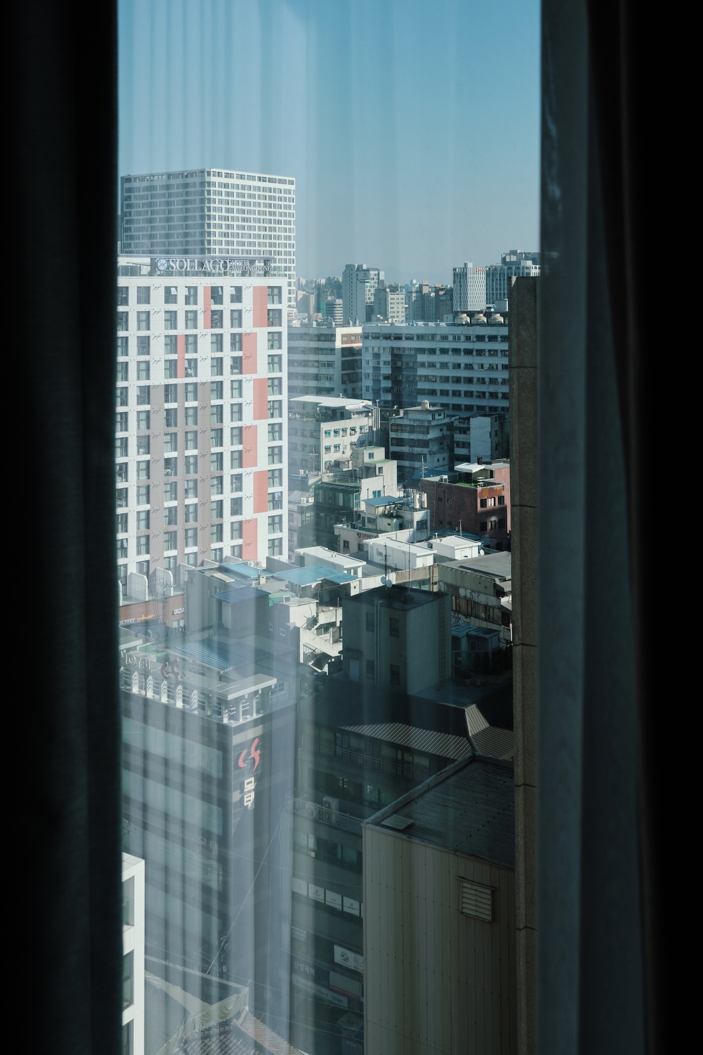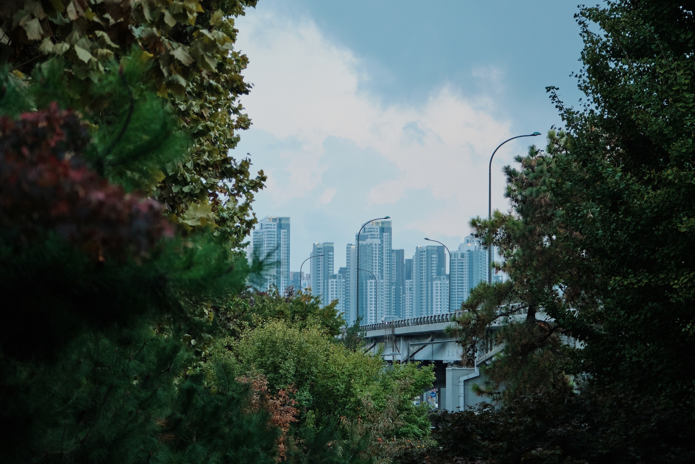 Seoul has a blue-ish tint for me. Glass on many buildings, colors, and overall gamma gives a feeling of blue-green-toned spaces almost everywhere. Also, the weather was already mild-cold which only adds cold tones to the space.