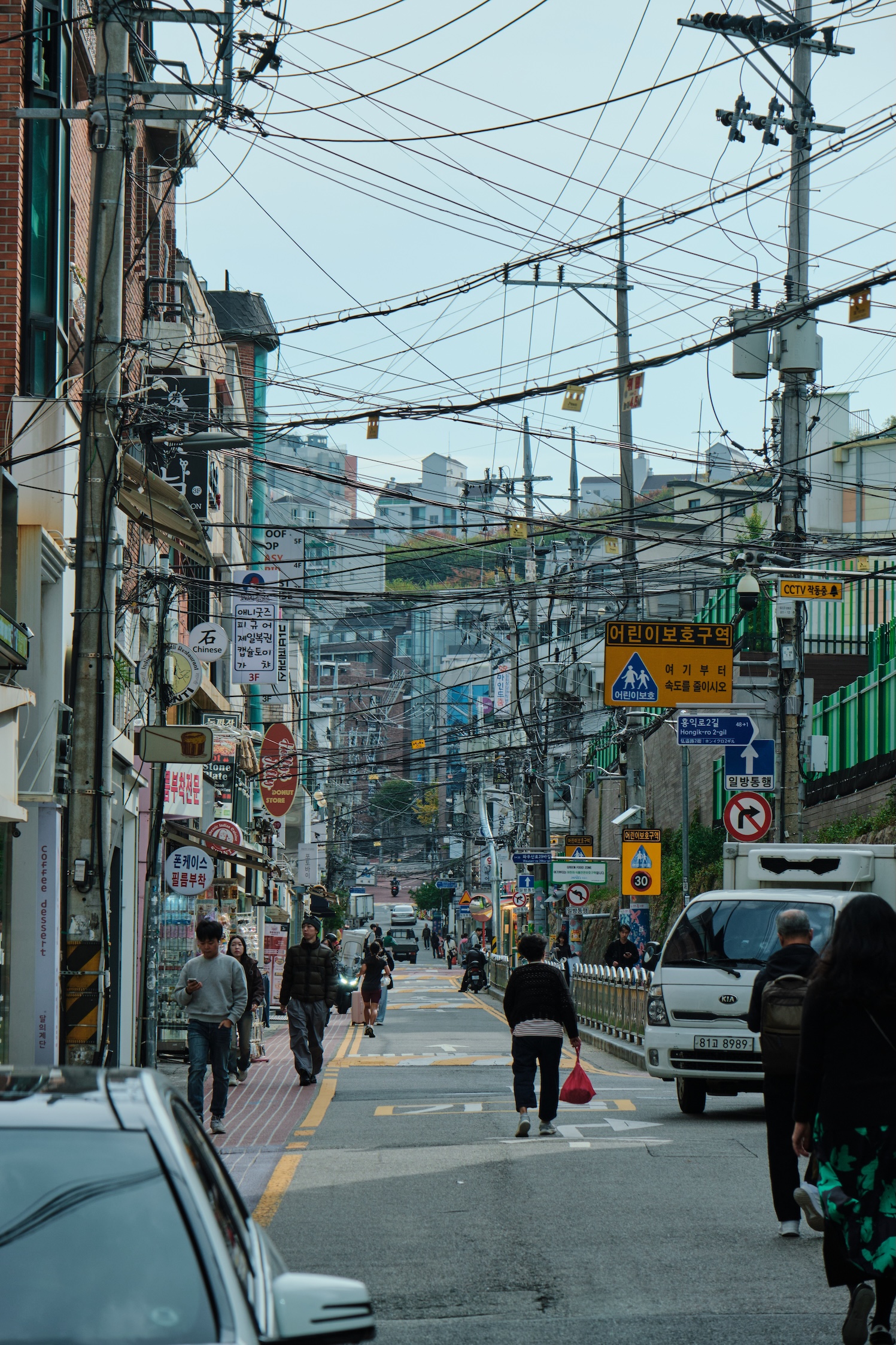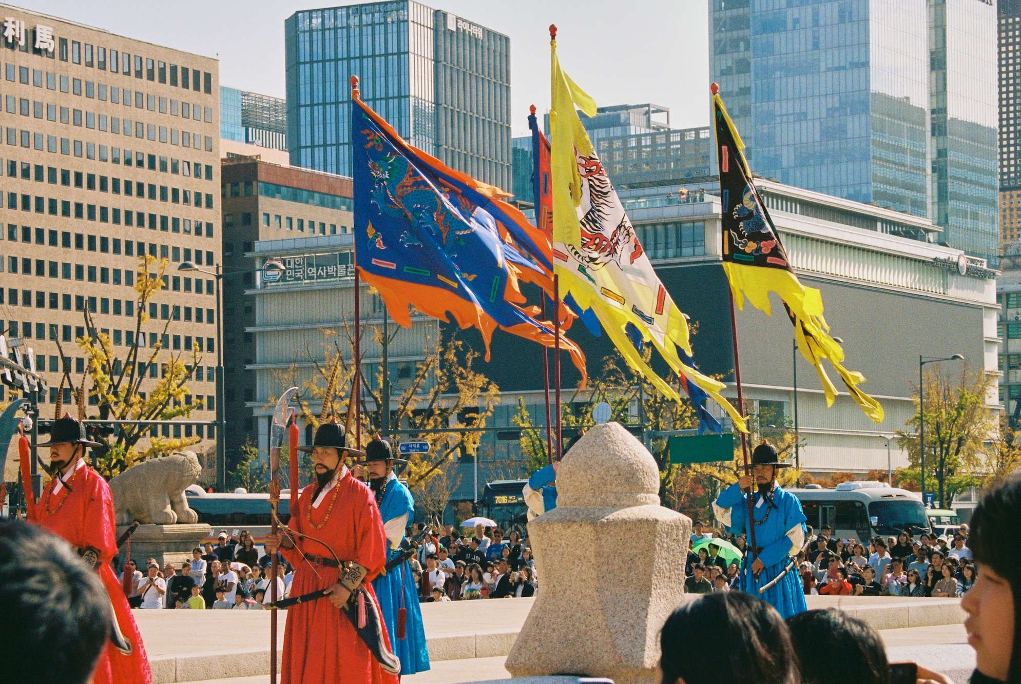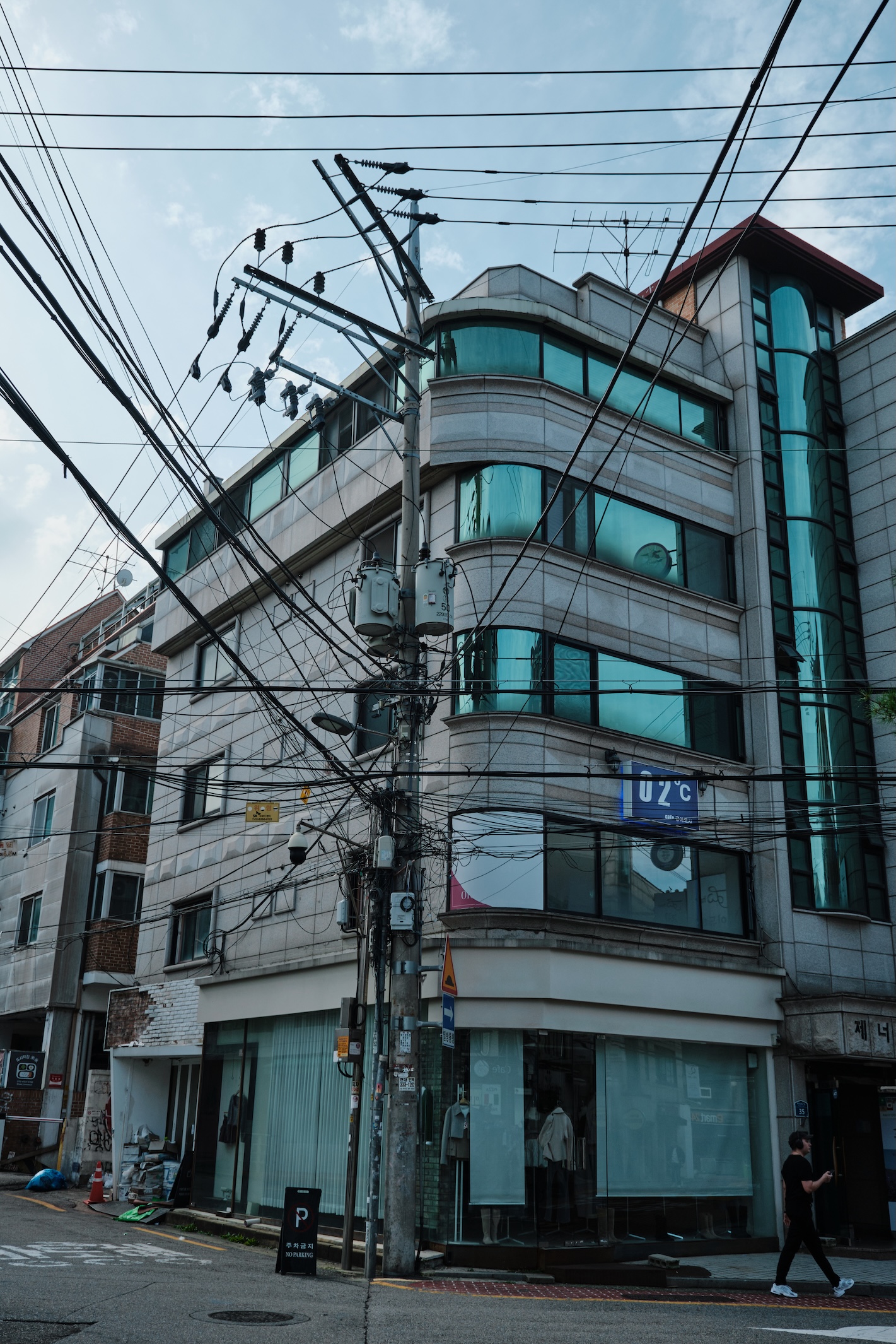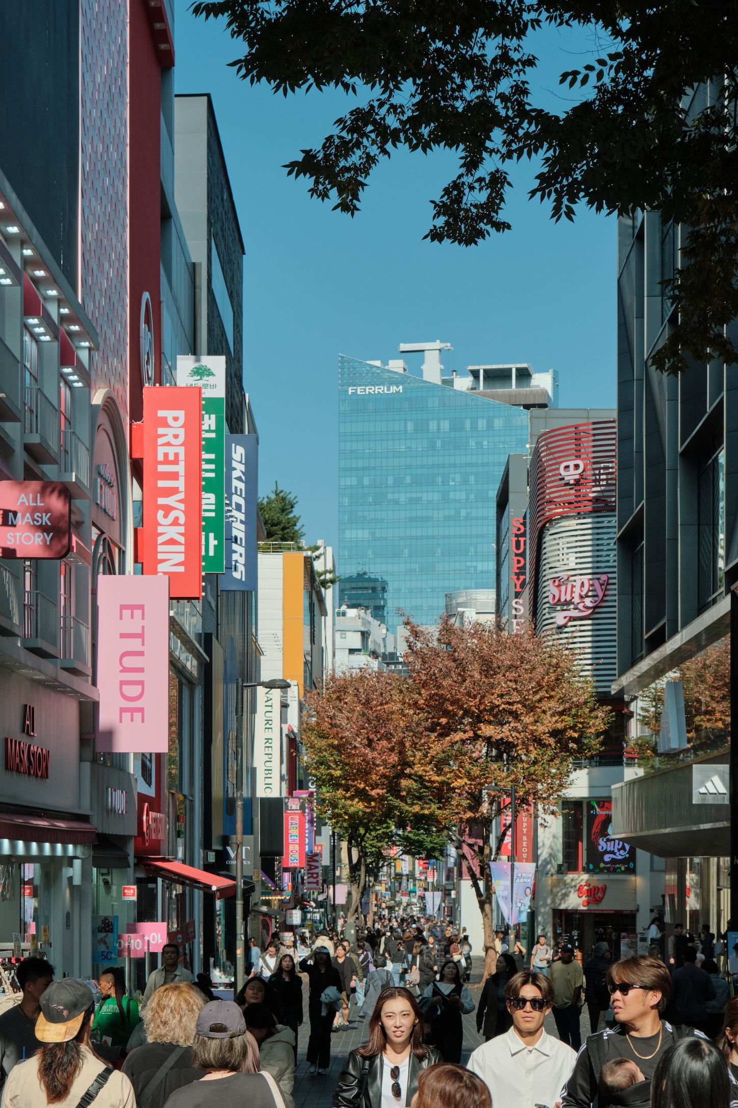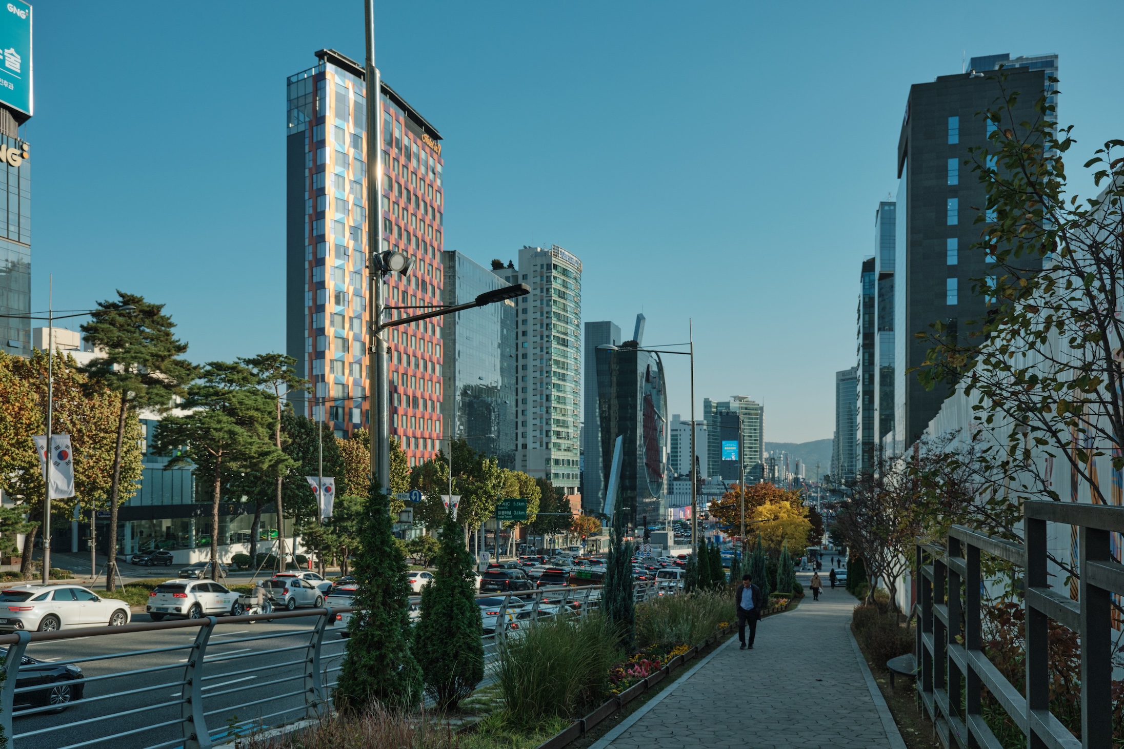 Seoul has a blue-ish tint for me. Glass on many buildings, colors, and overall gamma gives a feeling of blue-green-toned spaces almost everywhere. Also, the weather was already mild-cold which only adds cold tones to the space.