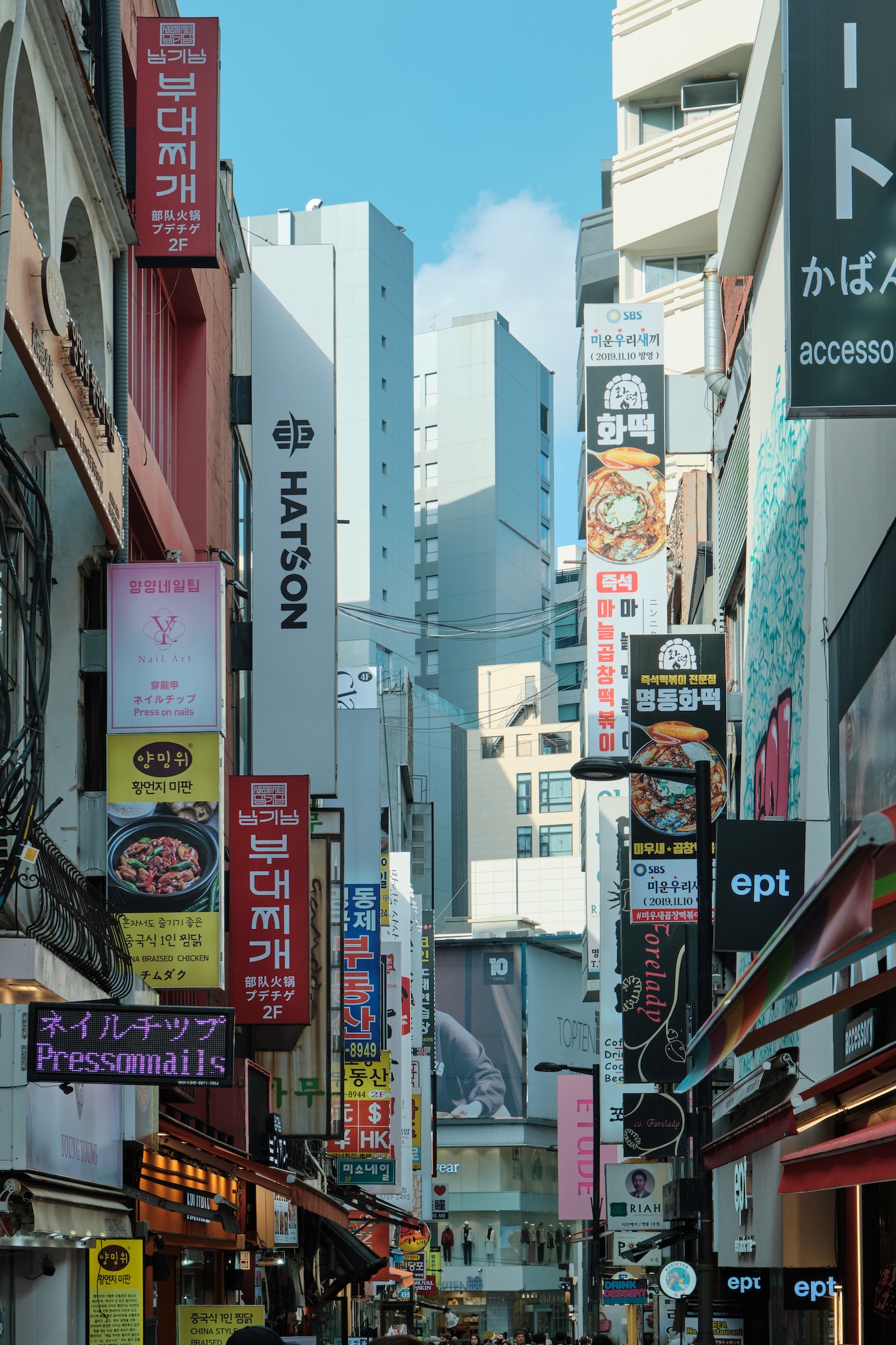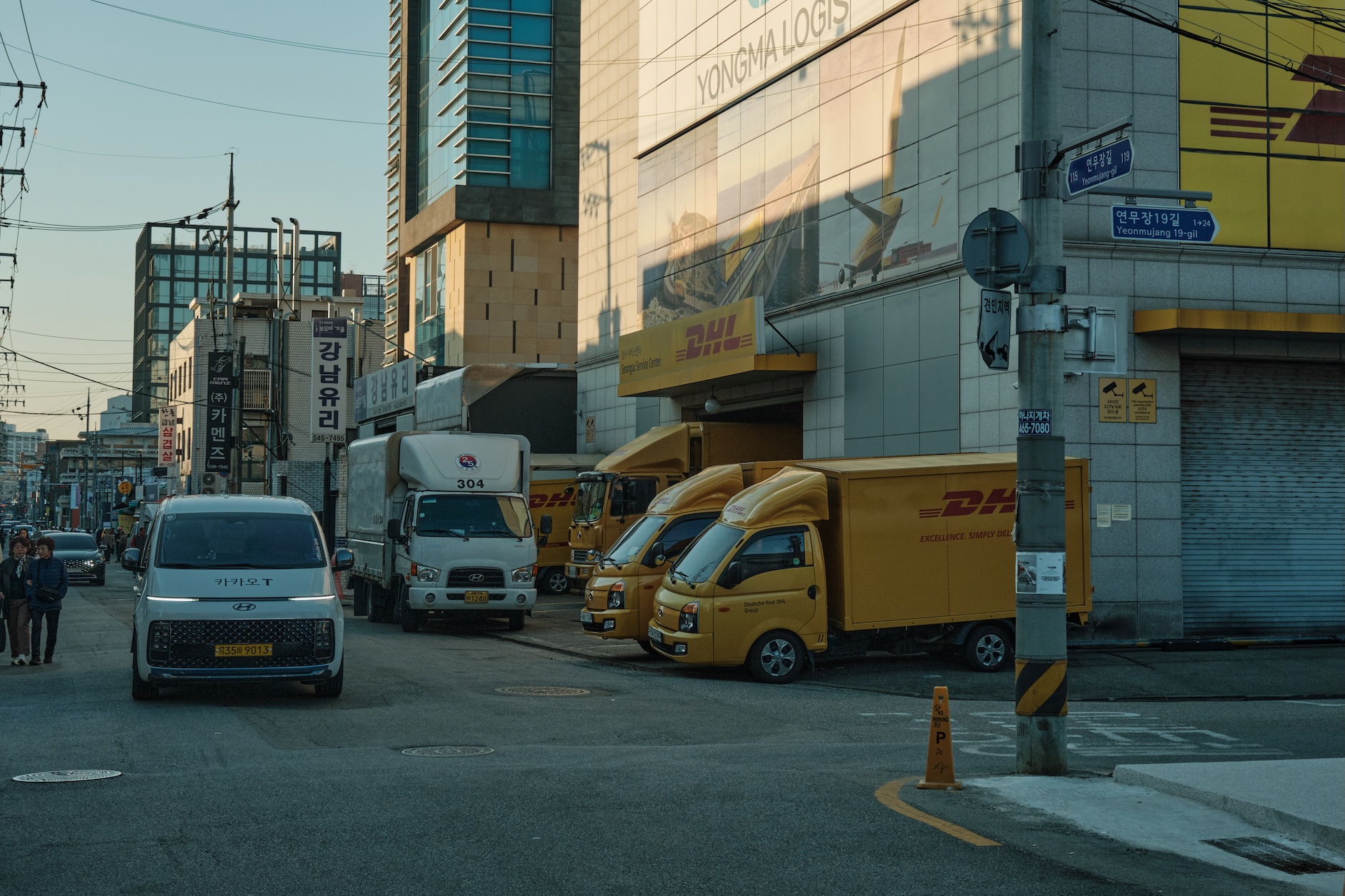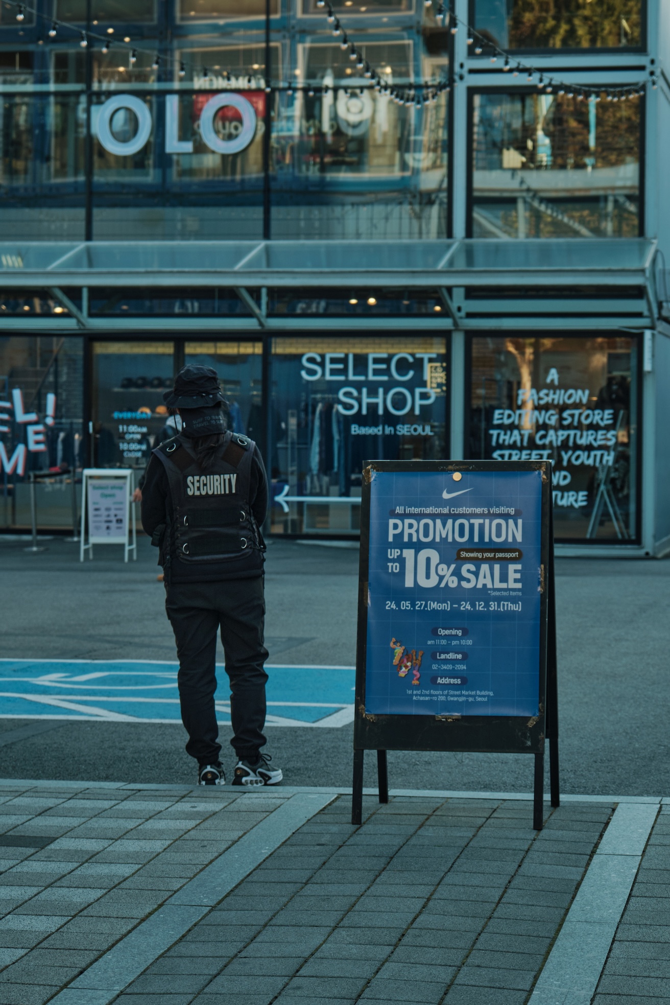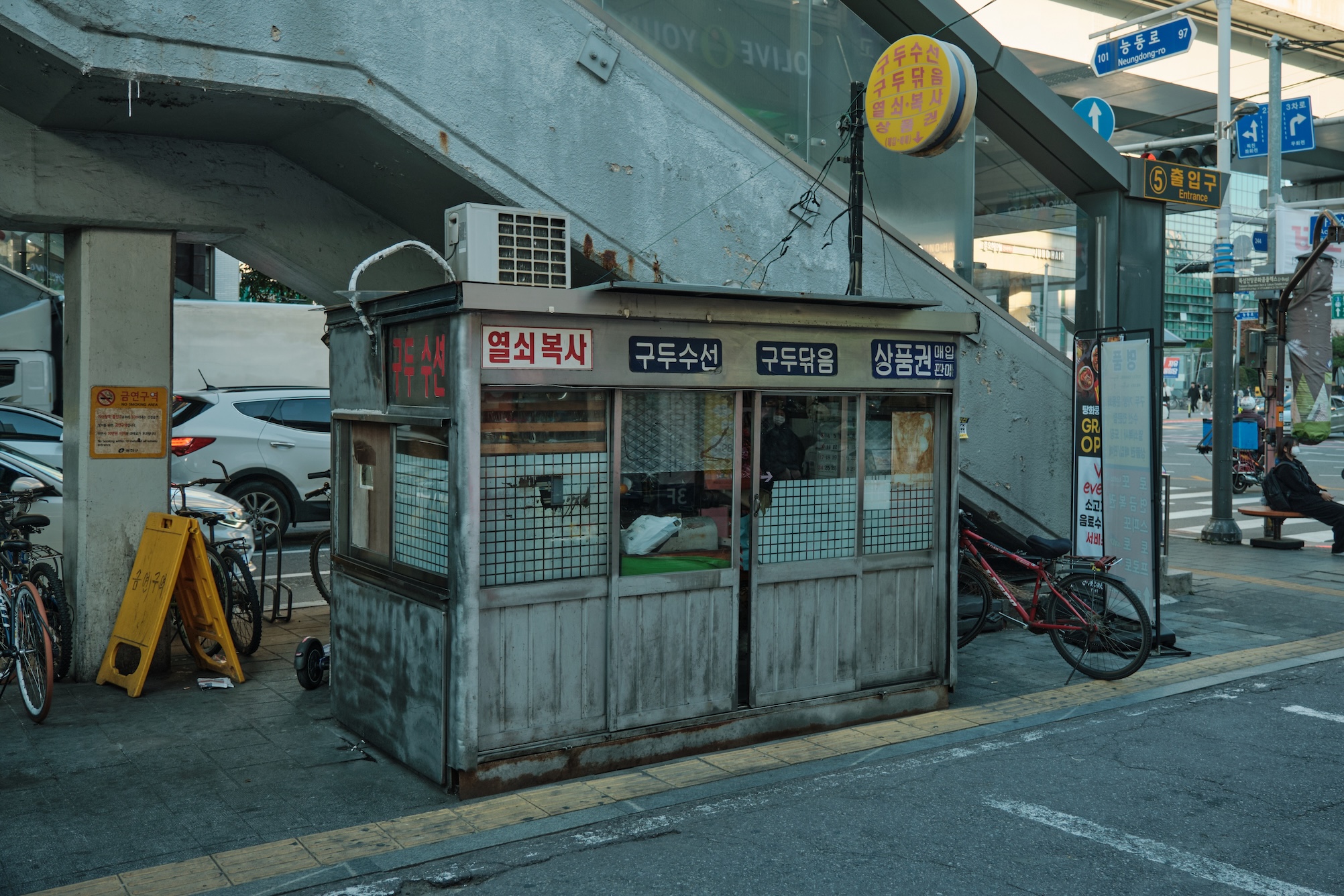 Seoul has a blue-ish tint for me. Glass on many buildings, colors, and overall gamma gives a feeling of blue-green-toned spaces almost everywhere. Also, the weather was already mild-cold which only adds cold tones to the space.