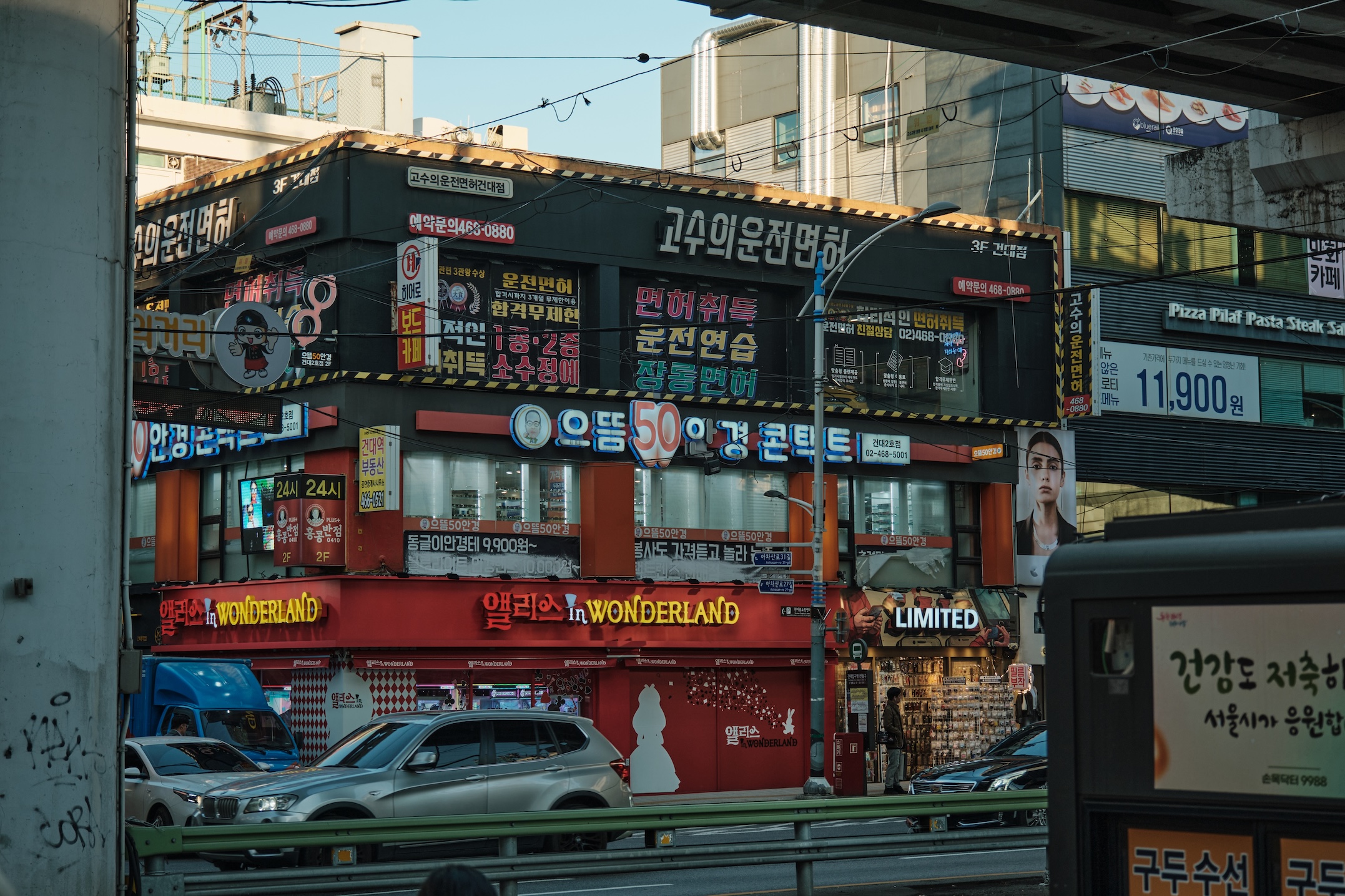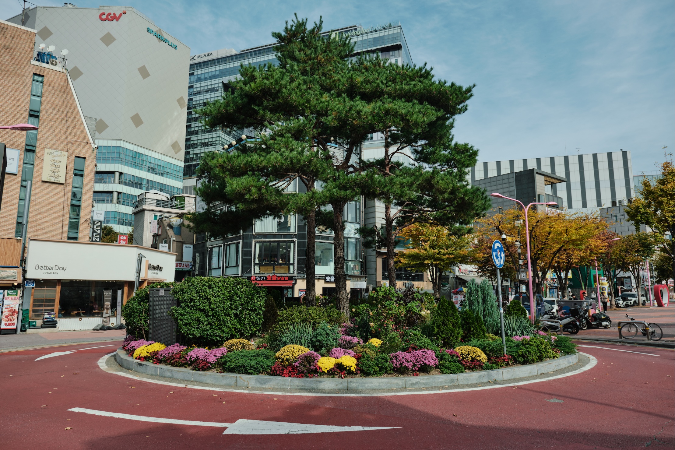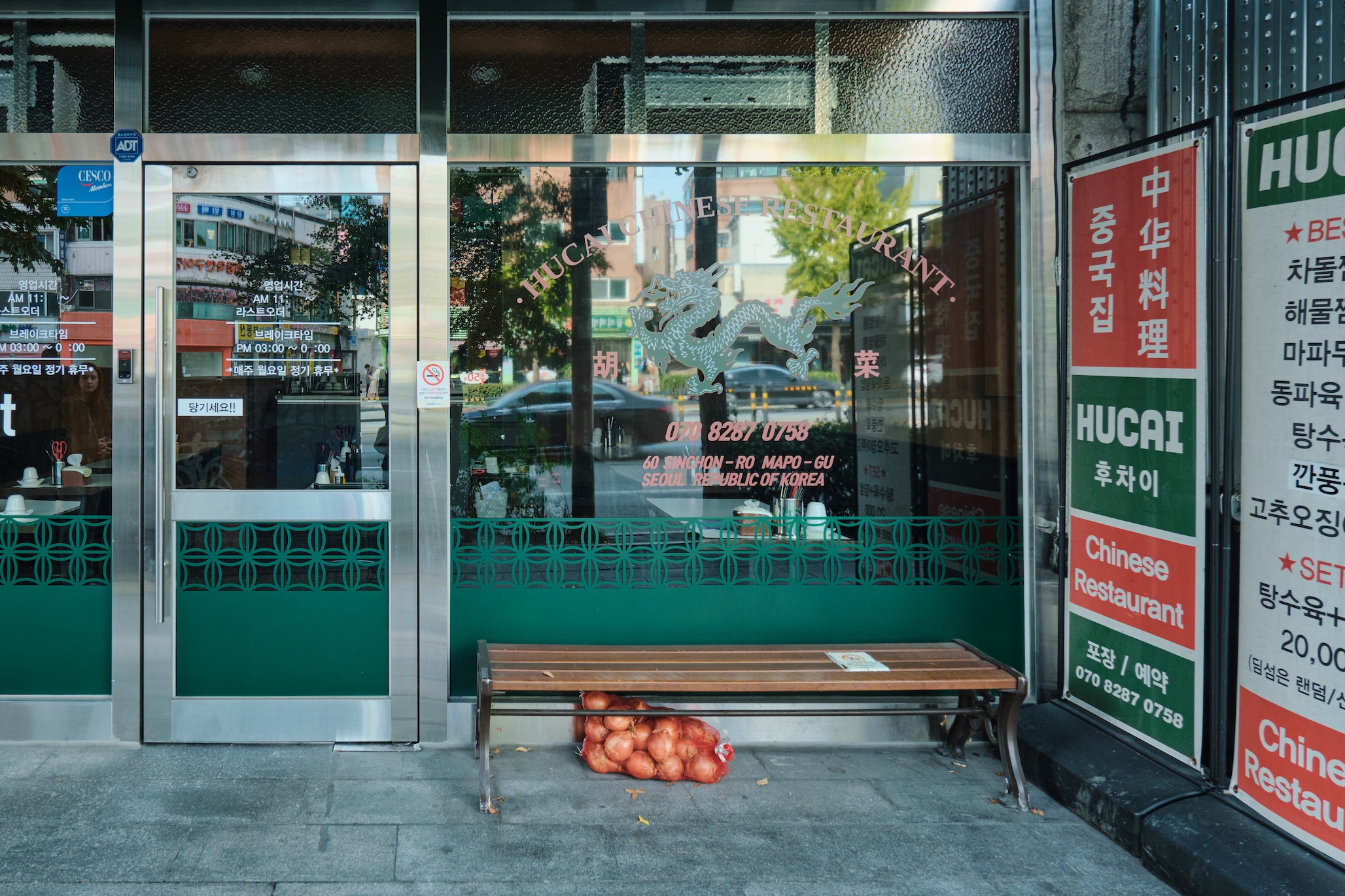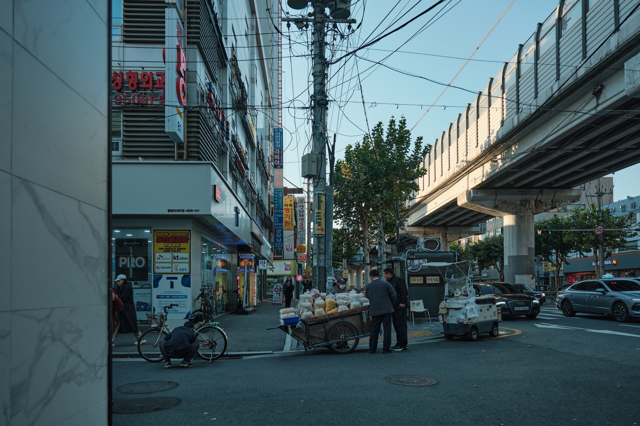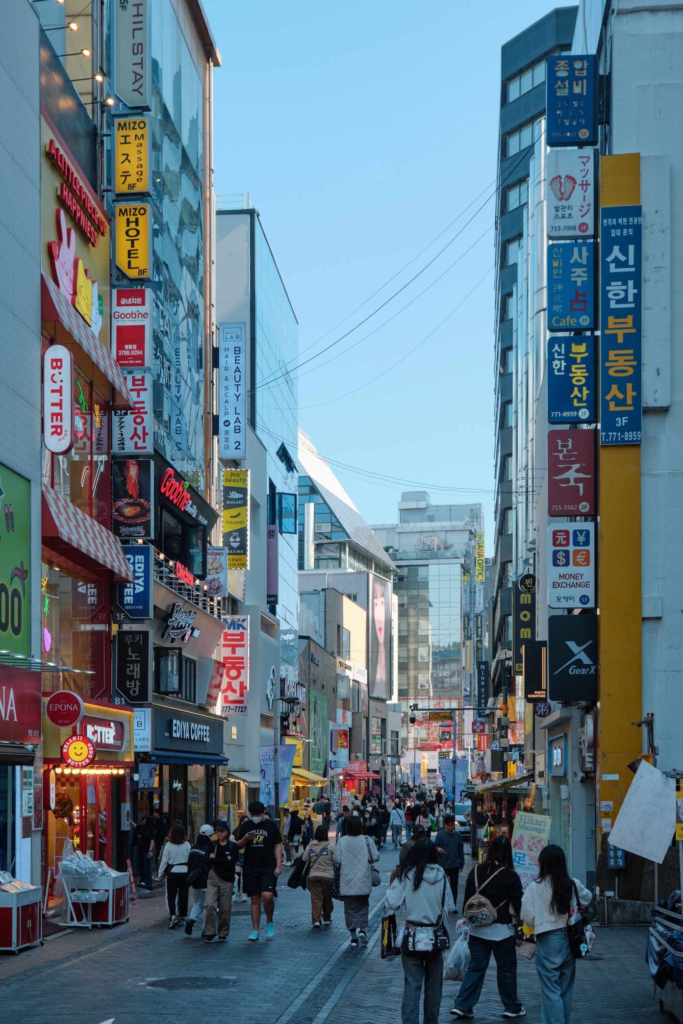 Seoul has a blue-ish tint for me. Glass on many buildings, colors, and overall gamma gives a feeling of blue-green-toned spaces almost everywhere. Also, the weather was already mild-cold which only adds cold tones to the space.