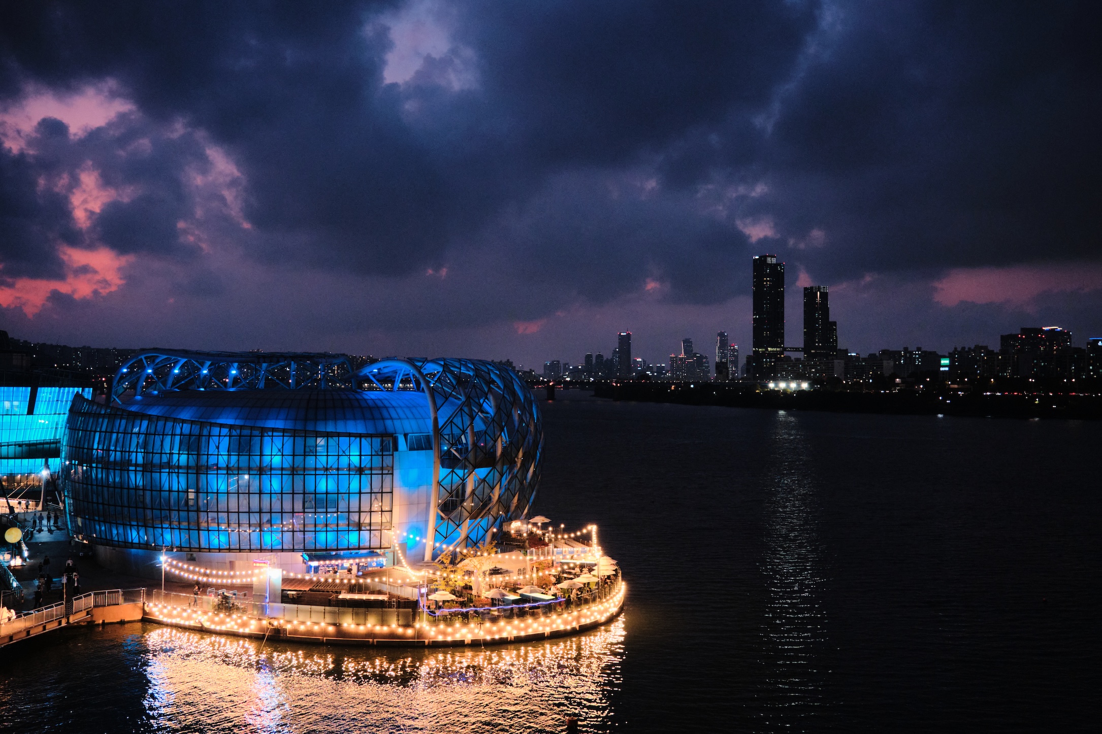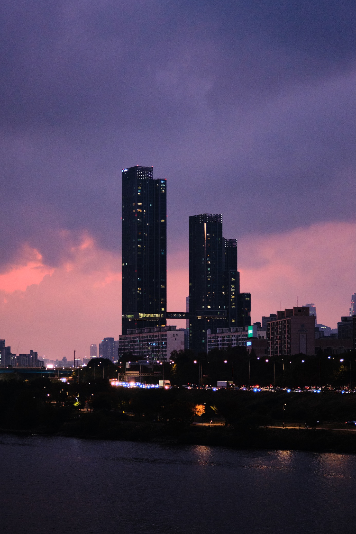 After circling around for flying by hours, it was a time for a walk. We decided to go to the other side of Han river by foot. Night started creeping pretty quickly, albeit, you can’t tell that in just 30 minutes it will be already dark.