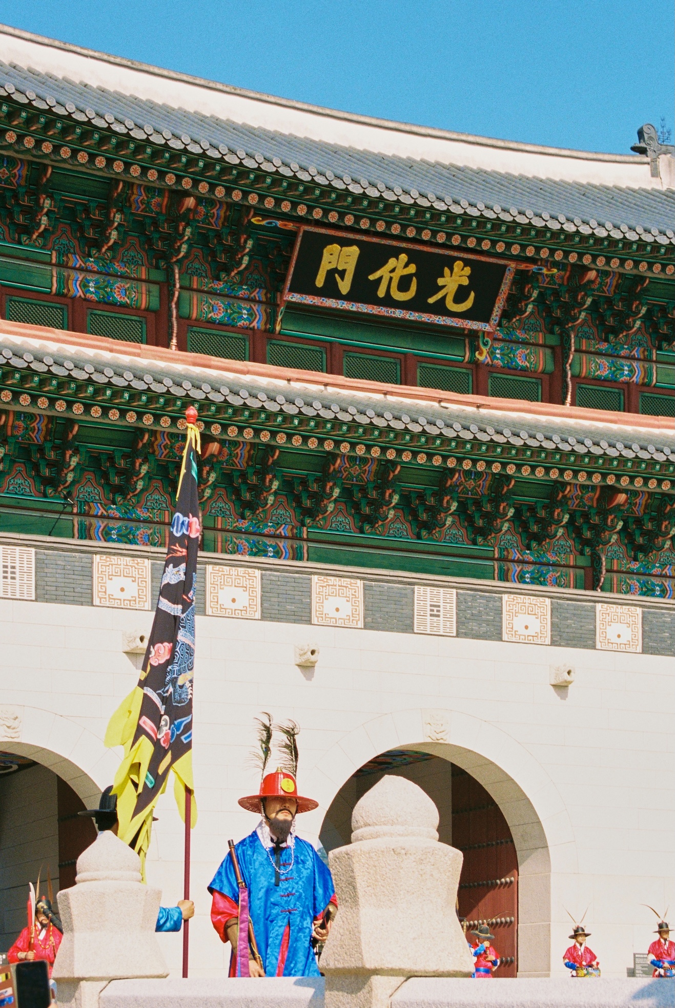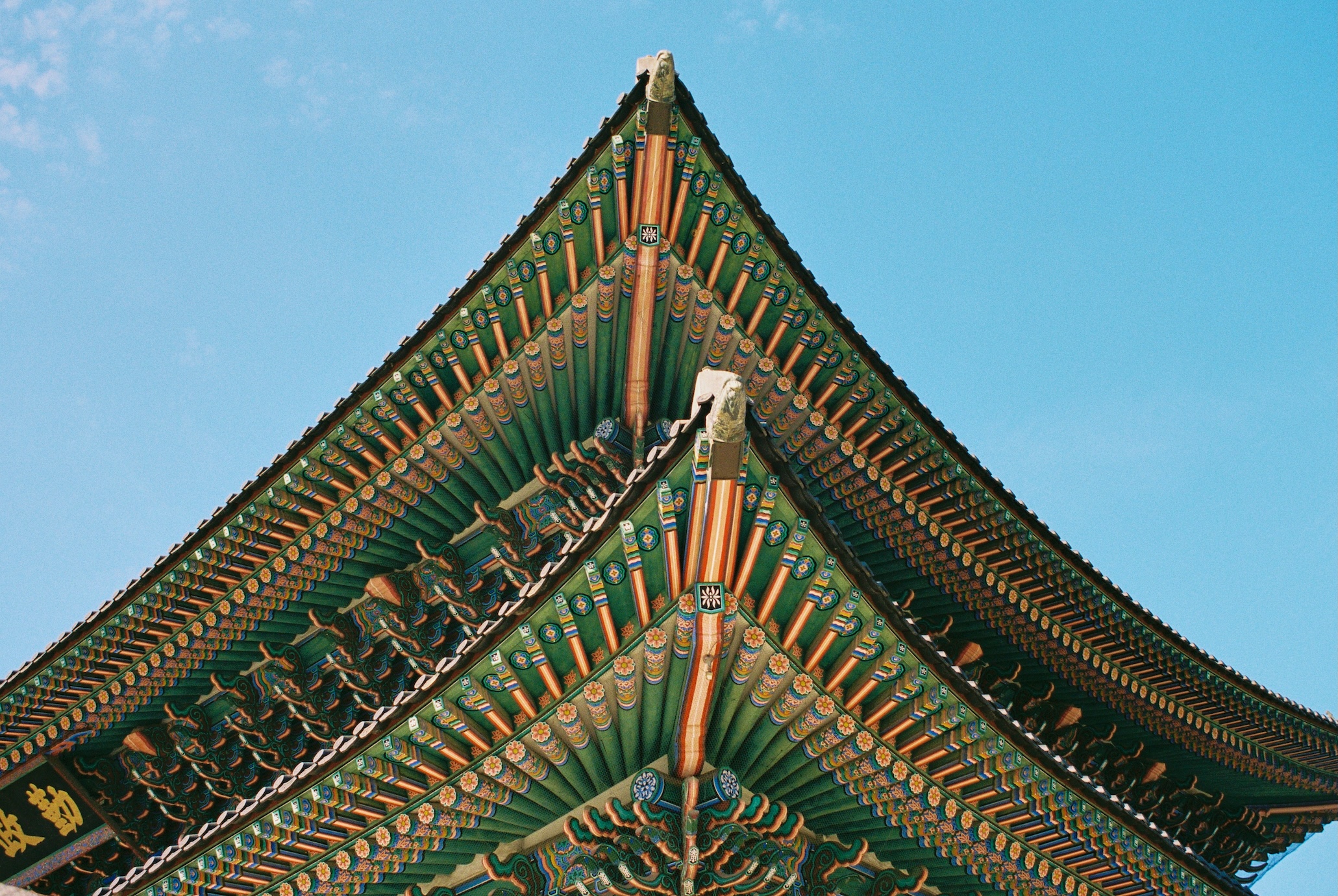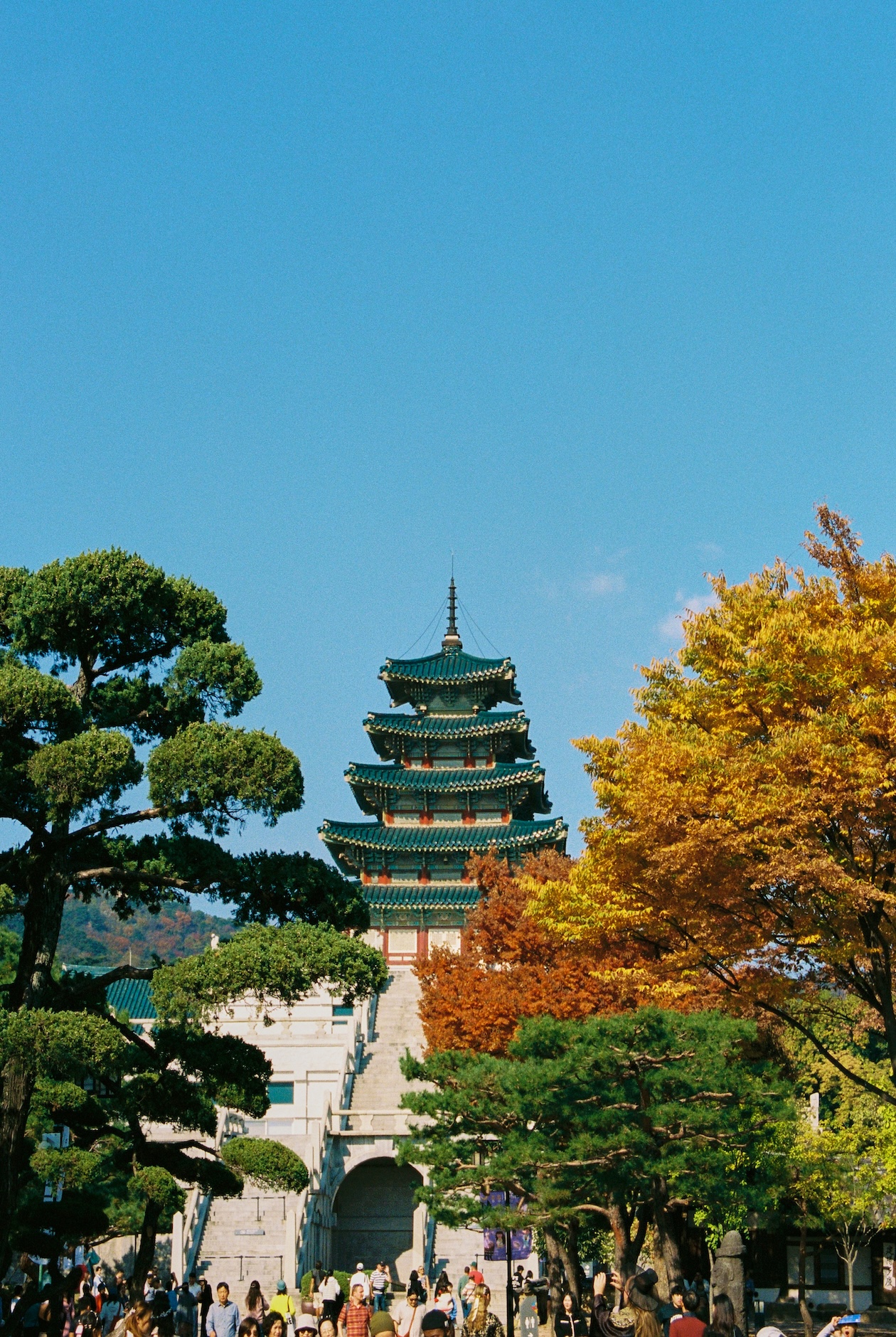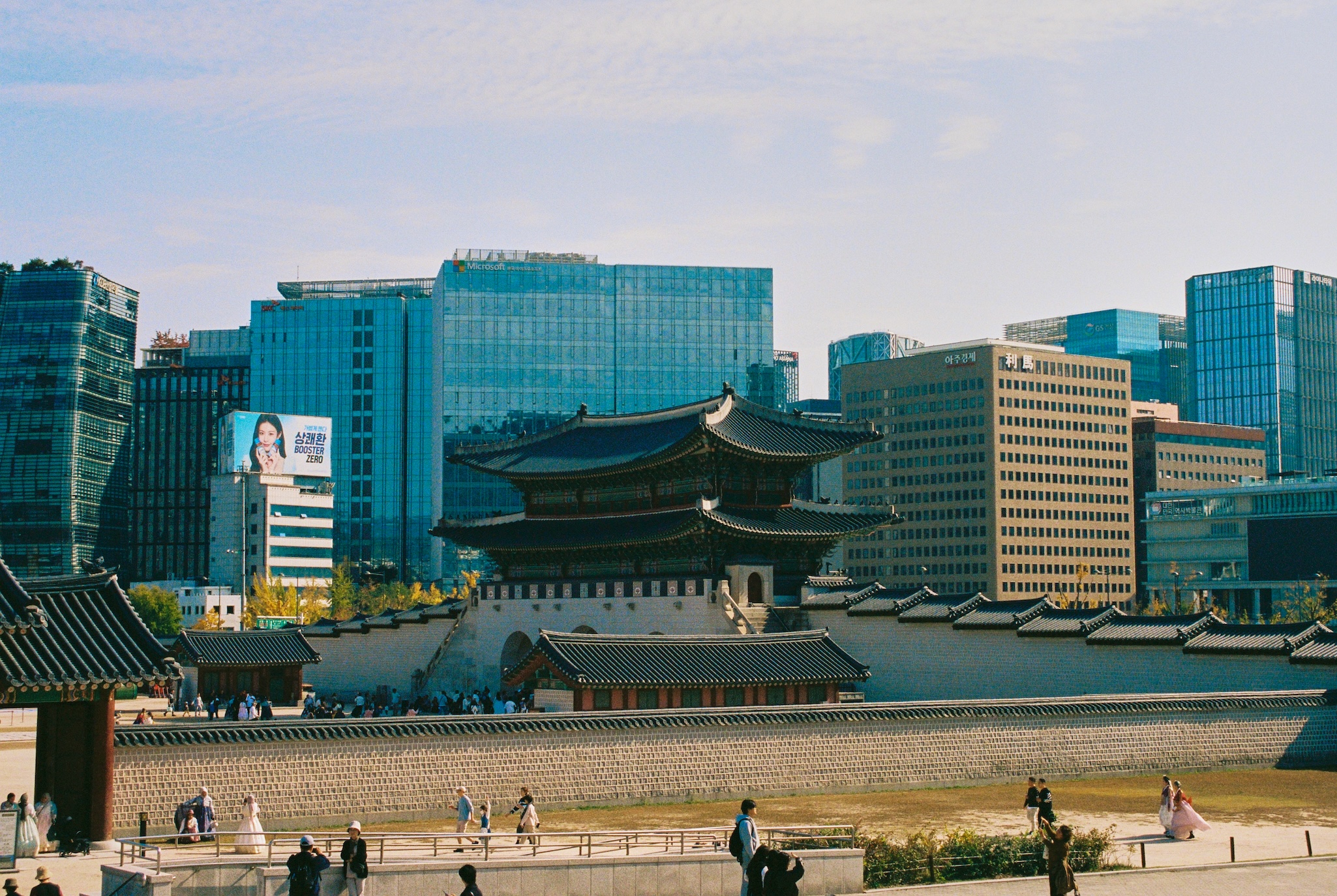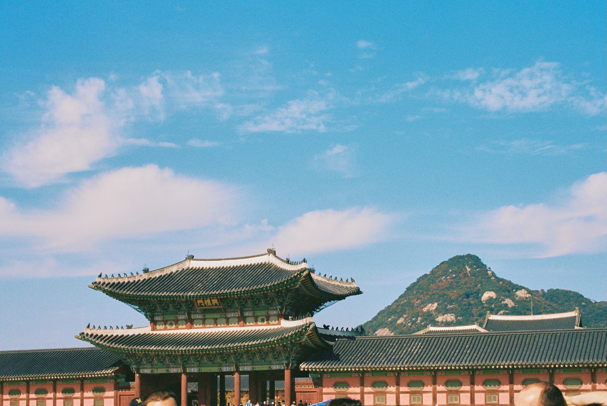 Continuing on the topic of palettes: here are many more greens and even blue colors in traditional architecture. But modern buildings somehow feel even more blue. Blue glass is predominant in Seoul.