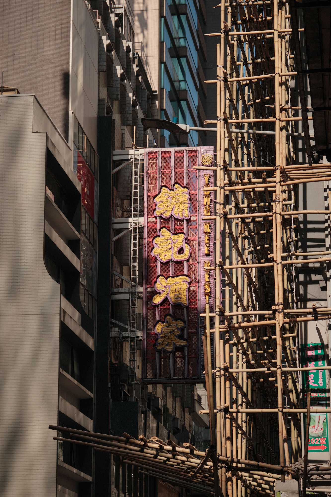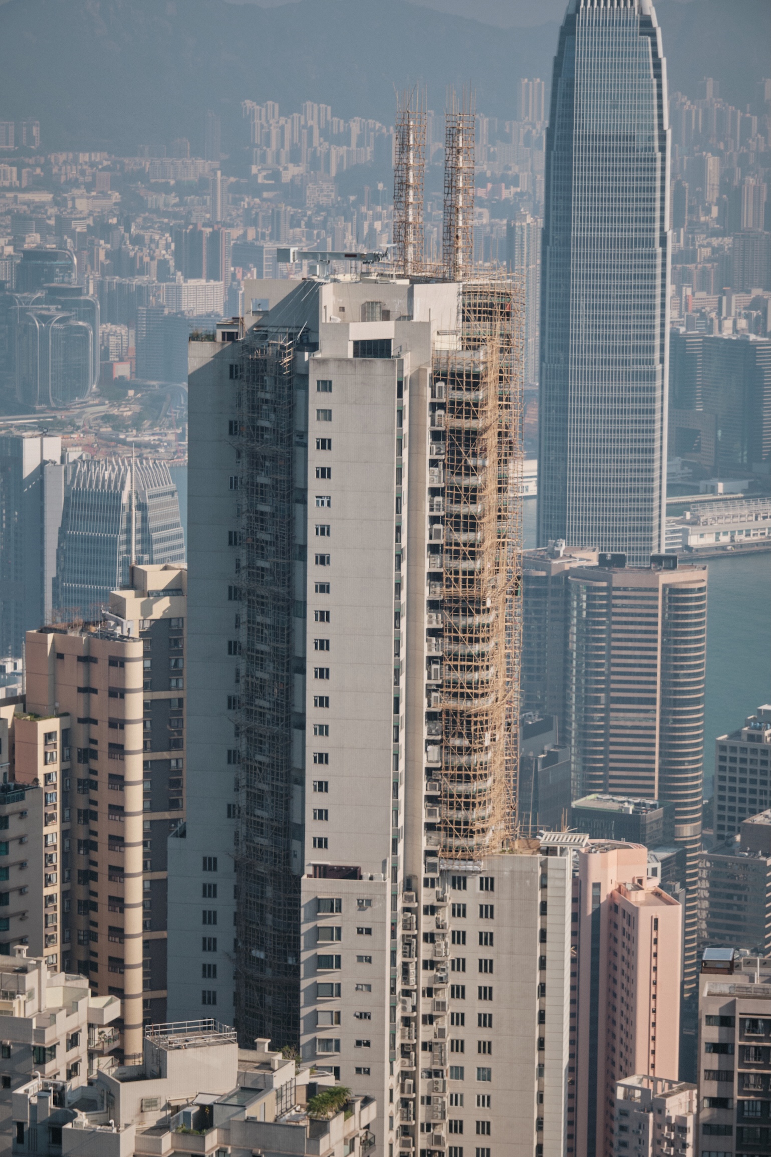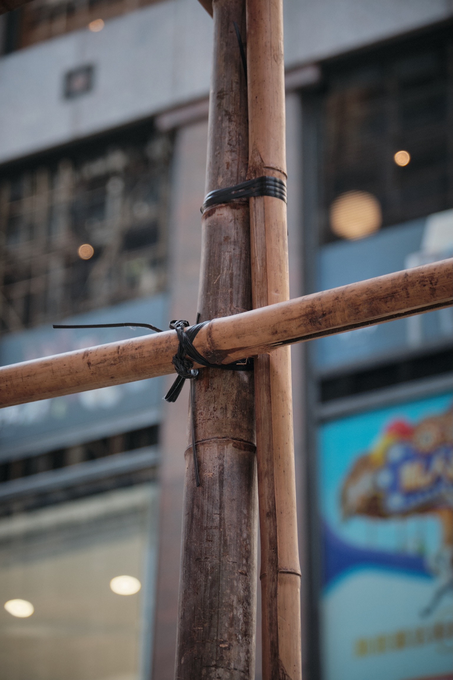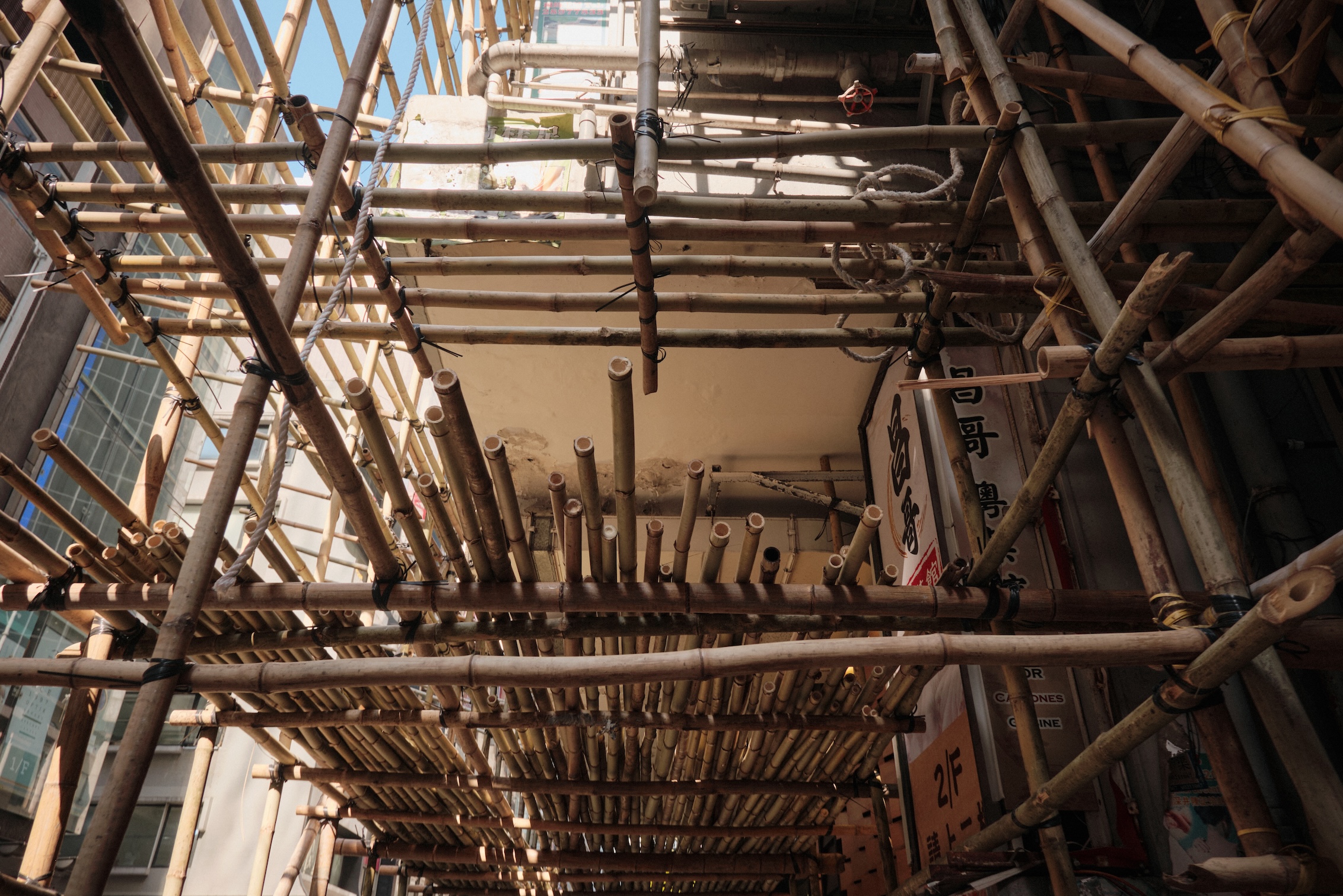 For the first time in my life, I see something fascinating and genuinely dangerous, in my opinion. Multistory bamboo constructions carefully built for renovation works.